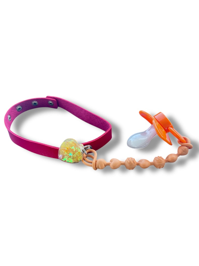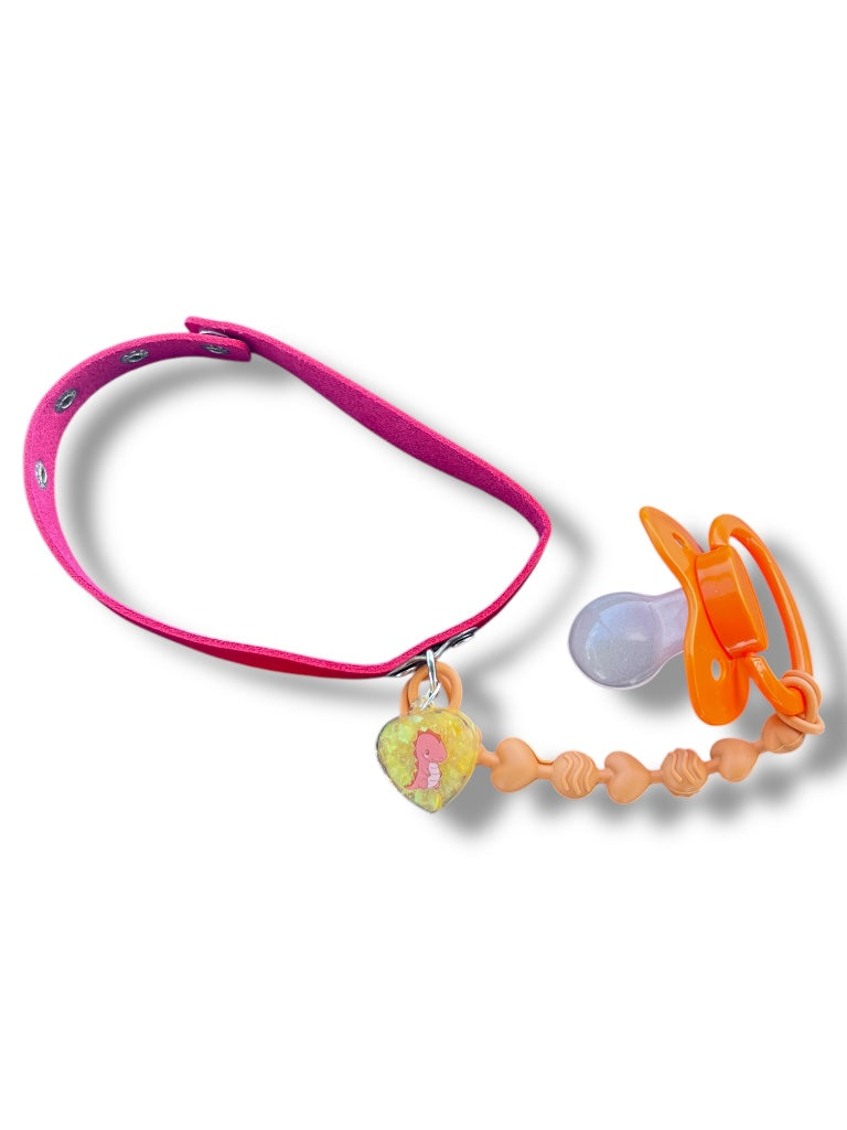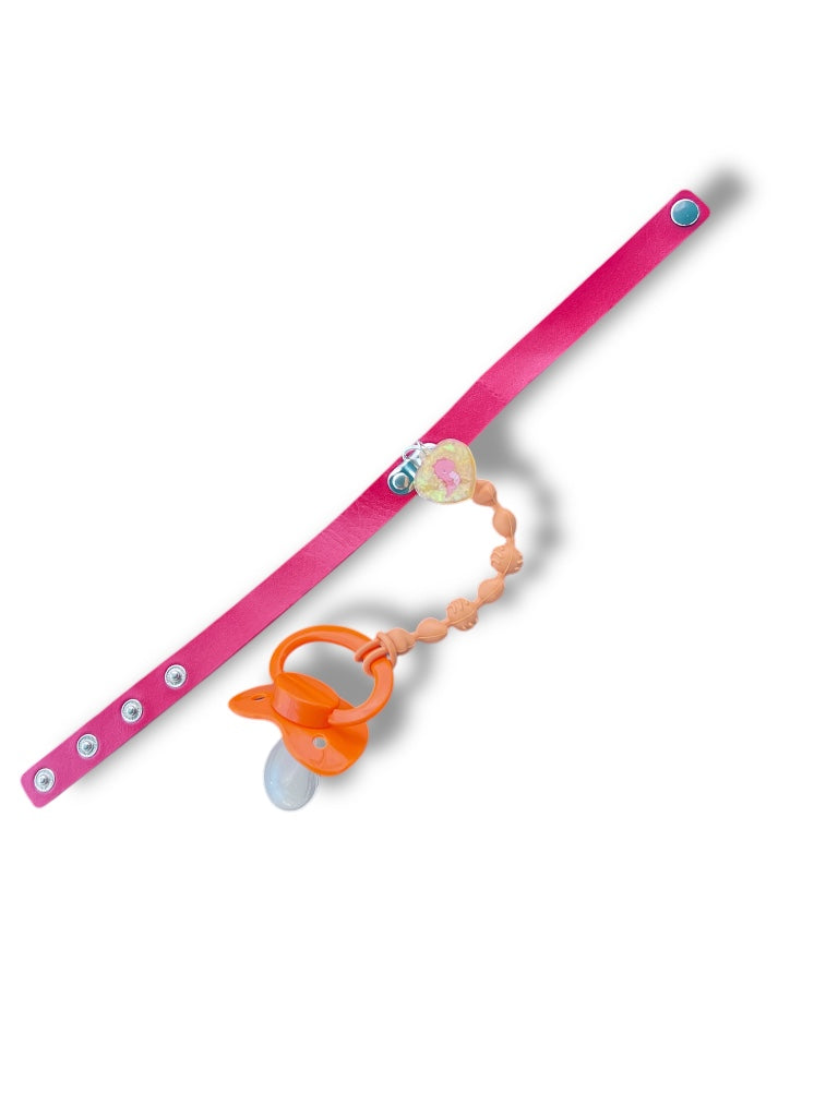 This adult pacifier collar is the perfect blend of form and function—whether you're looking for a practical tool during regression, a stylish piece for your collection, or a comforting paci solution that fits your ABDL lifestyle.