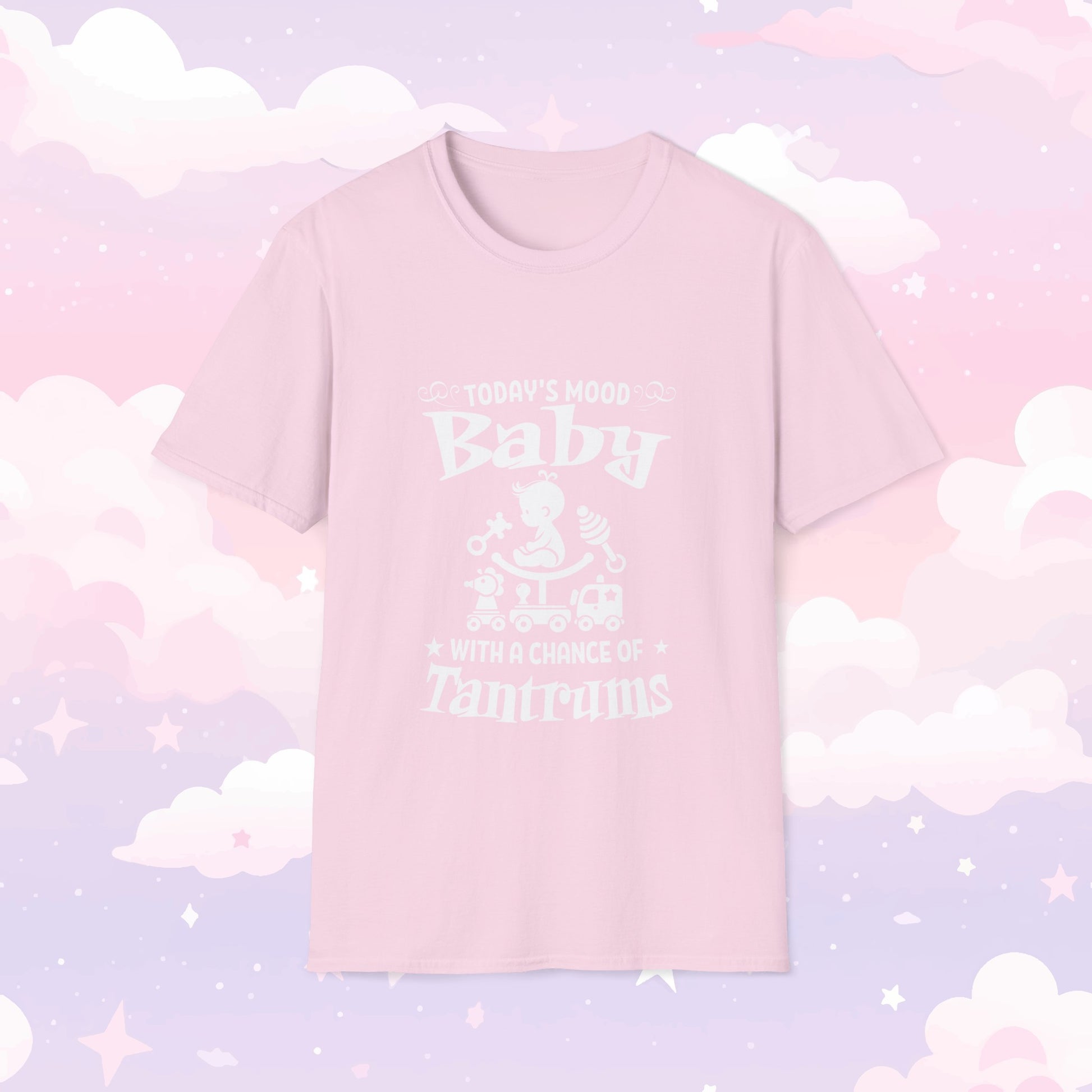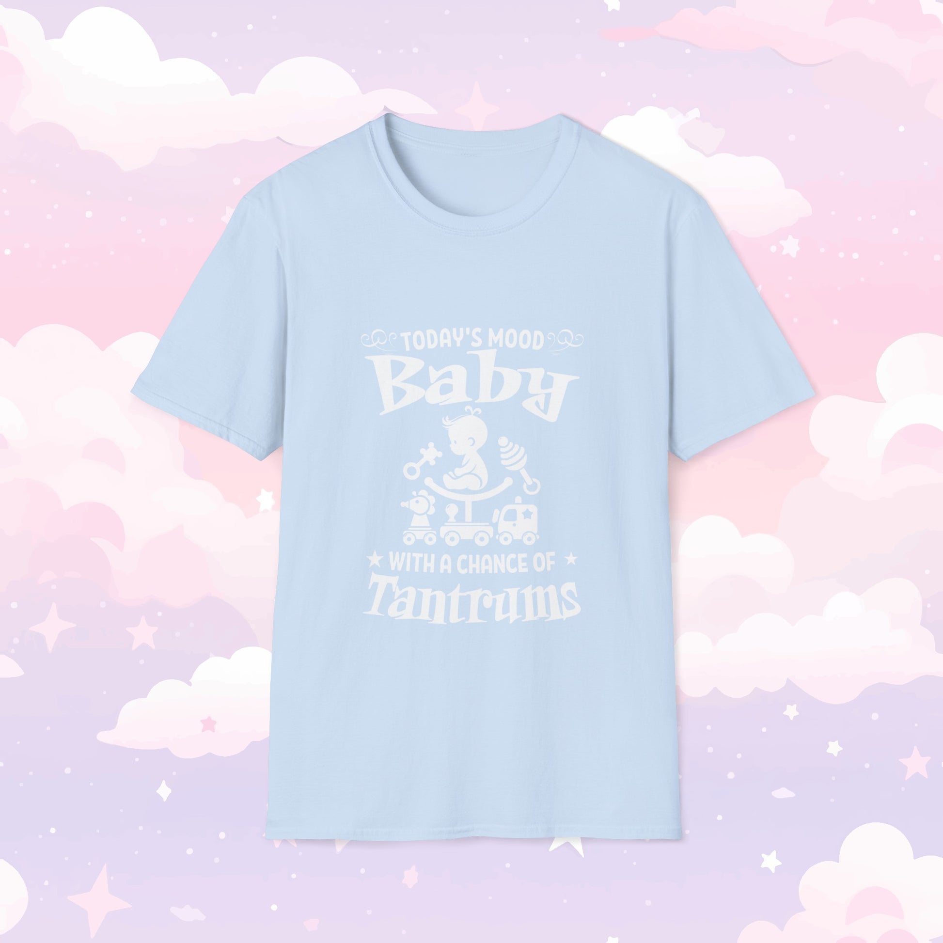 Embrace your playful side with our "Mood Today: Baby, with a Chance of Tantrums" T-Shirt! Perfect for ABDL enthusiasts and anyone who loves to express their mood with a touch of humor, this t-shirt is a fun and comfortable addition to your wardrobe.