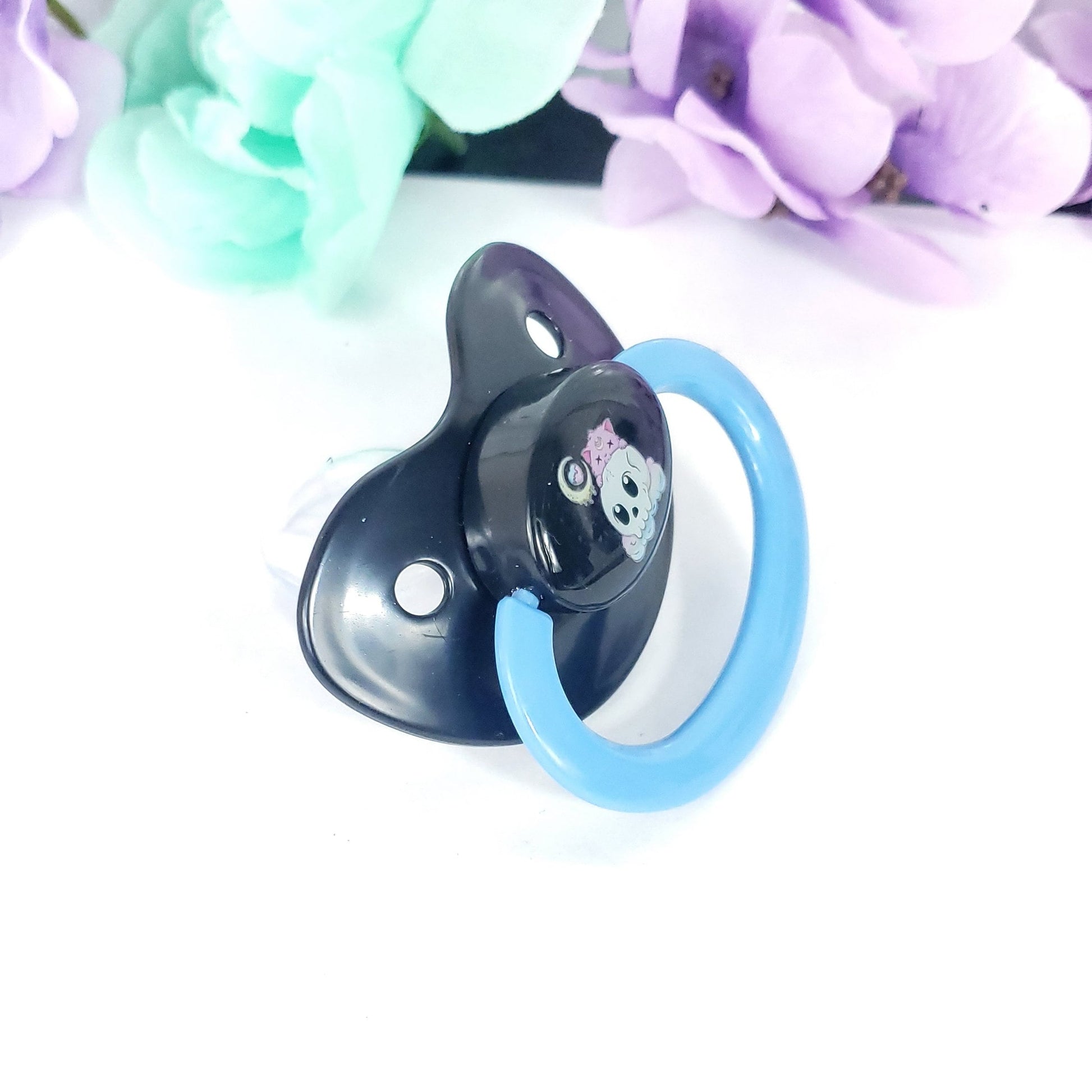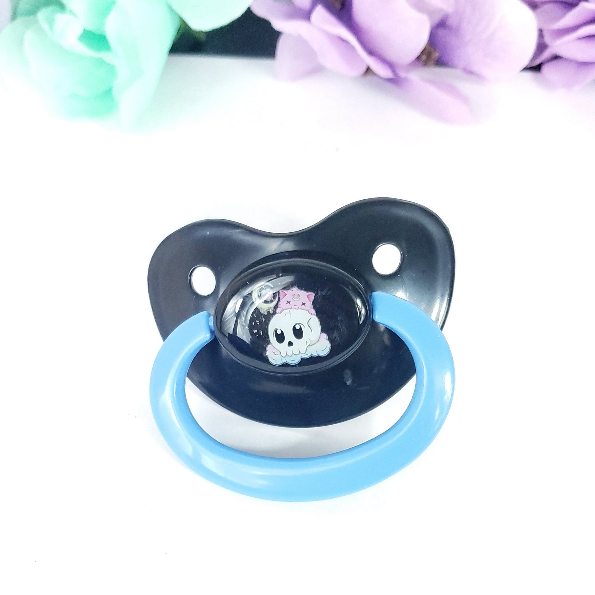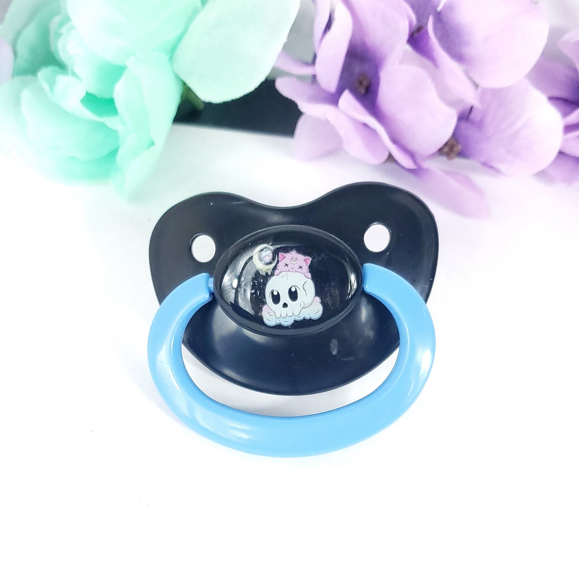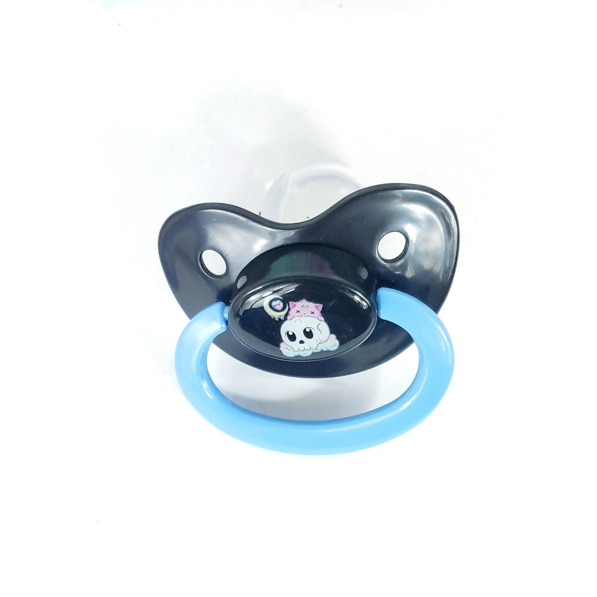 Introducing our Creepy Kawaii Cat ABDL Adult Pacifier, a unique and captivating accessory that combines elements of creepiness and cuteness. This pacifier is designed to add a touch of whimsy and intrigue to your age regression or alternative fashion style.