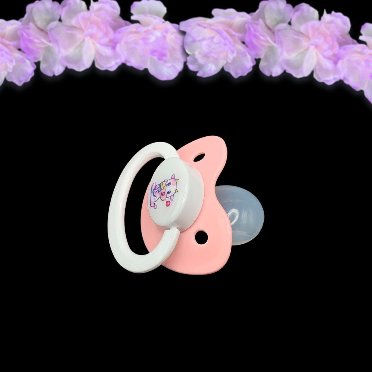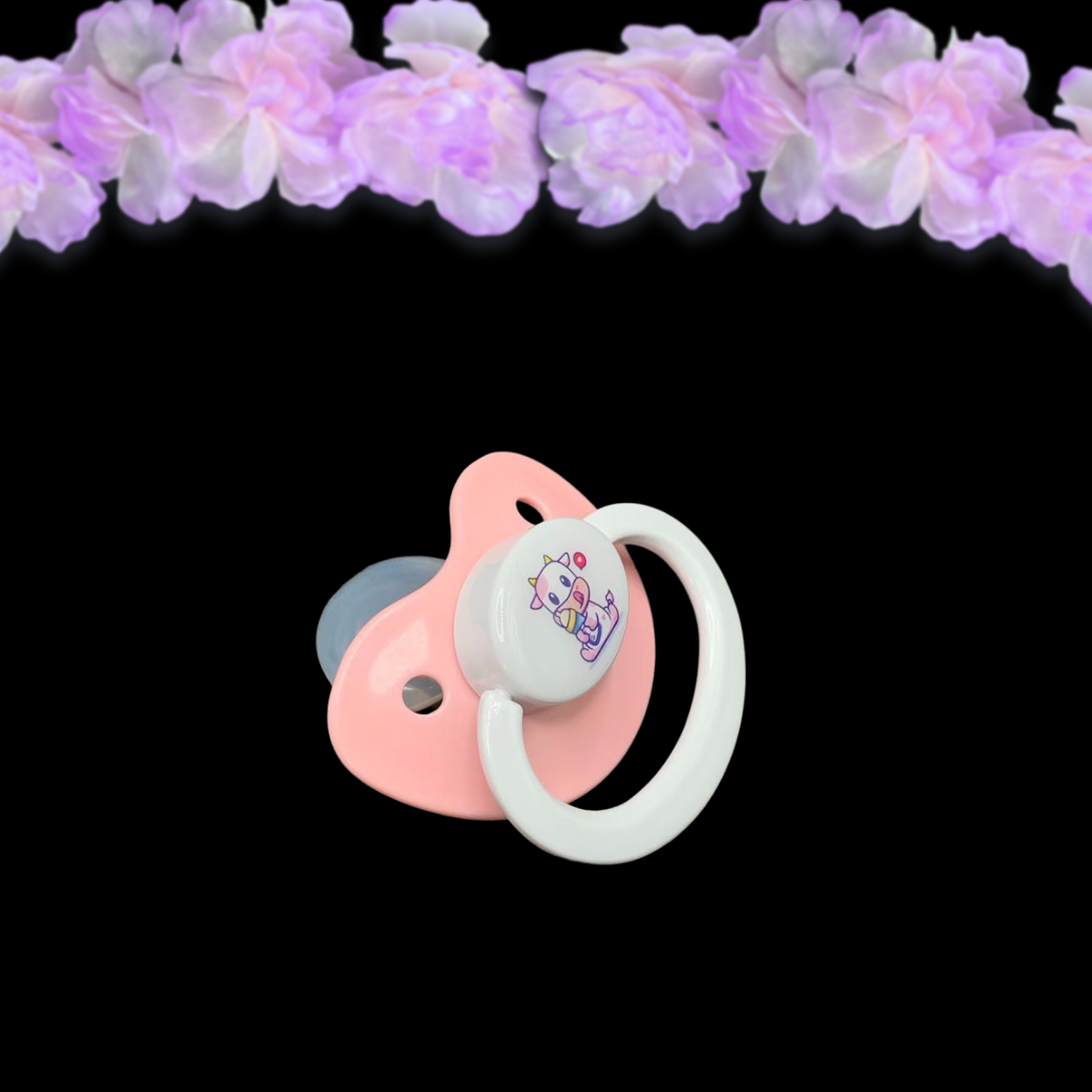 Sweet and playful, this adult pacifier features an adorable strawberry-pink cow center! Combining charm and comfort, this unique design is perfect for anyone who loves cute, farm-inspired aesthetics with a hint of sweetness. The vibrant pink cow with strawberry accents makes it a standout piece, ideal for adding a touch of fun to your collection. Crafted for durability and comfort, this pacifier is both functional and irresistibly cute—perfect for everyday use or as a delightful addition to your accessories!
