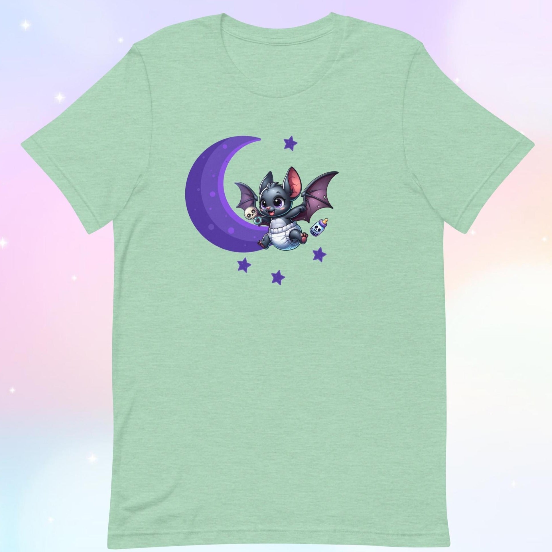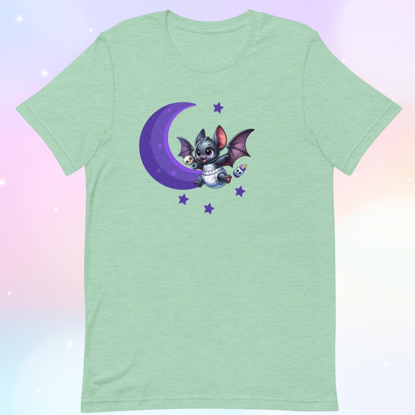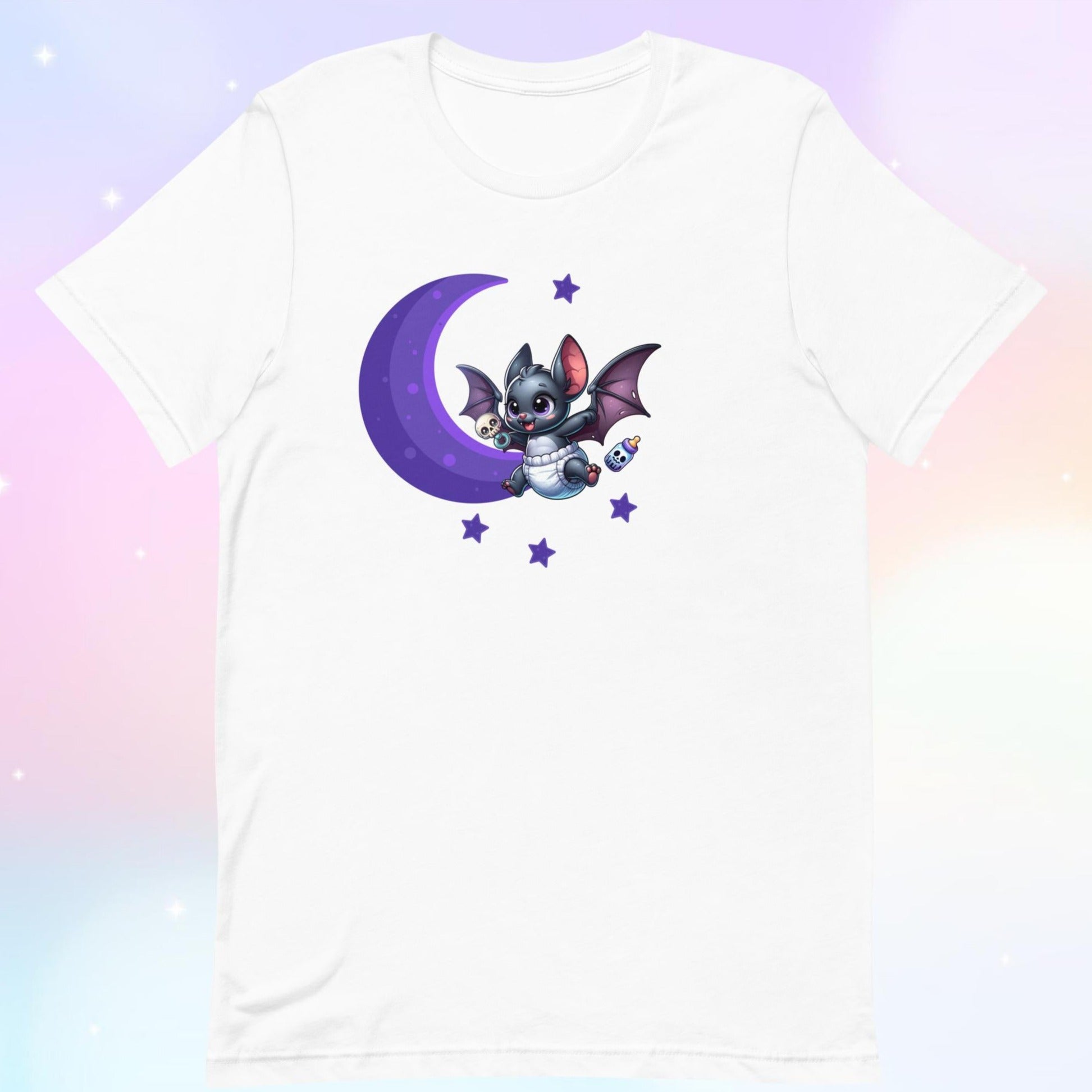 Adorable Diapered Bat Design: The charming diapered bat graphic is both cute and fun, making it a delightful addition to your ABDL wardrobe. Whether you're a fan of bats or just love unique and playful designs, this t-shirt is perfect for you.
