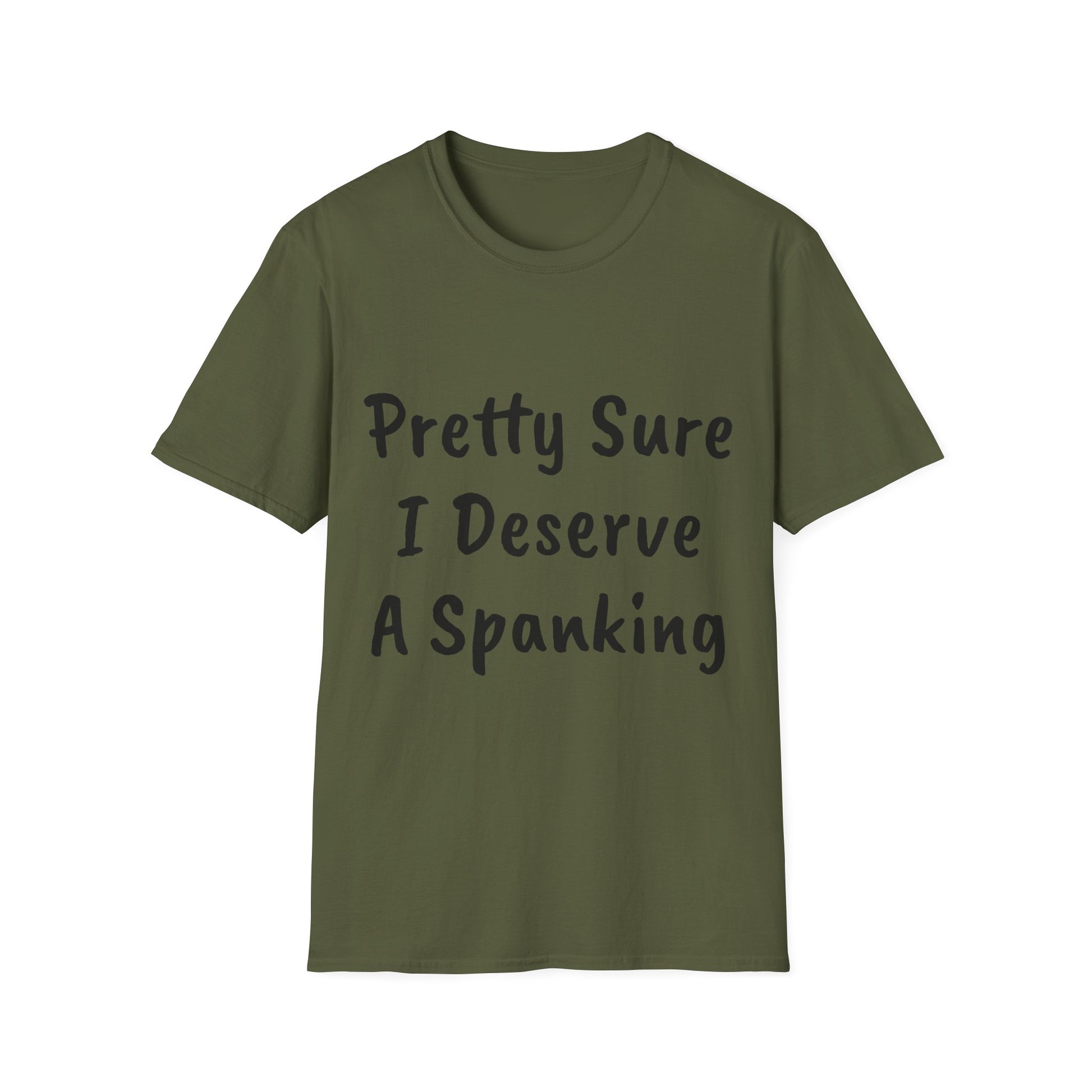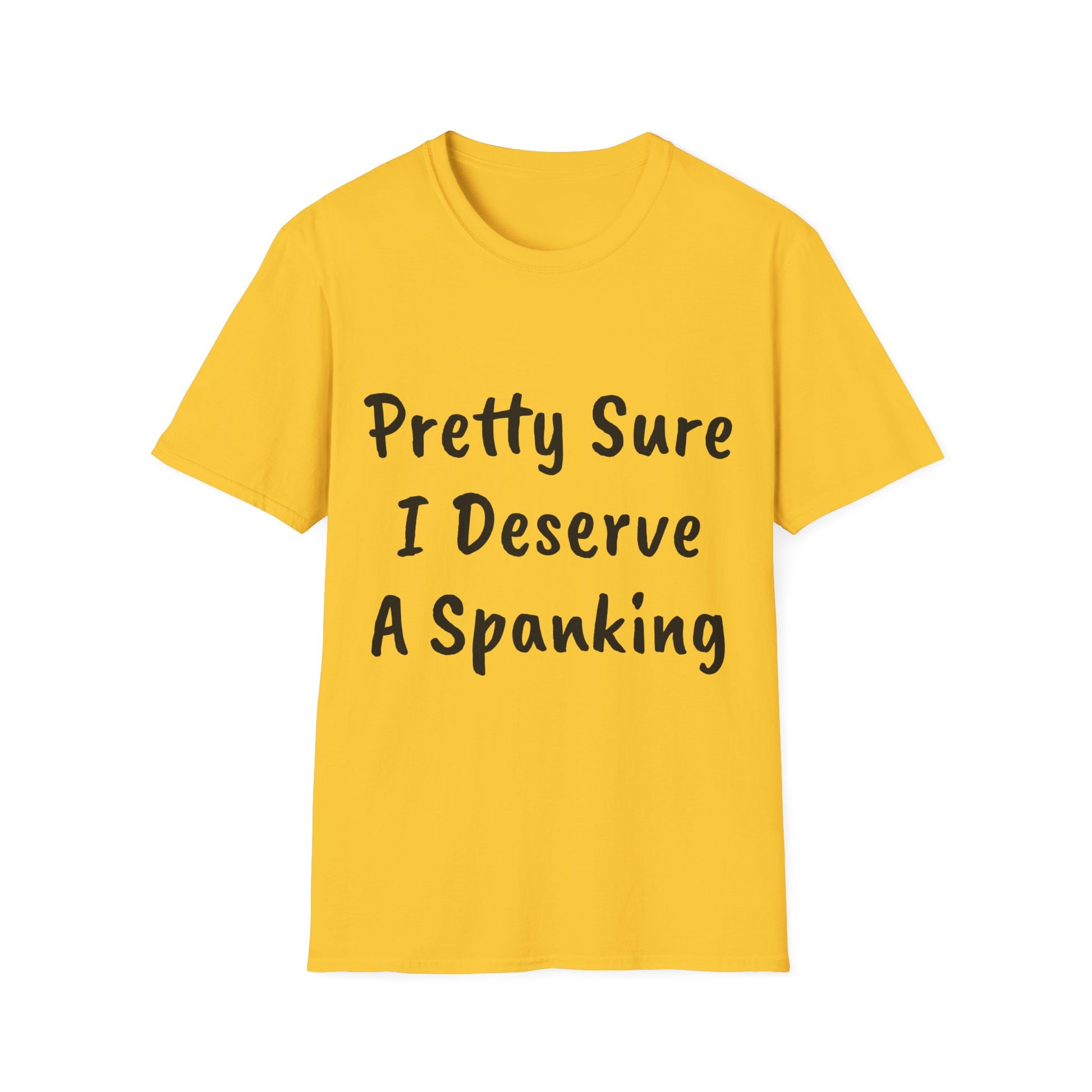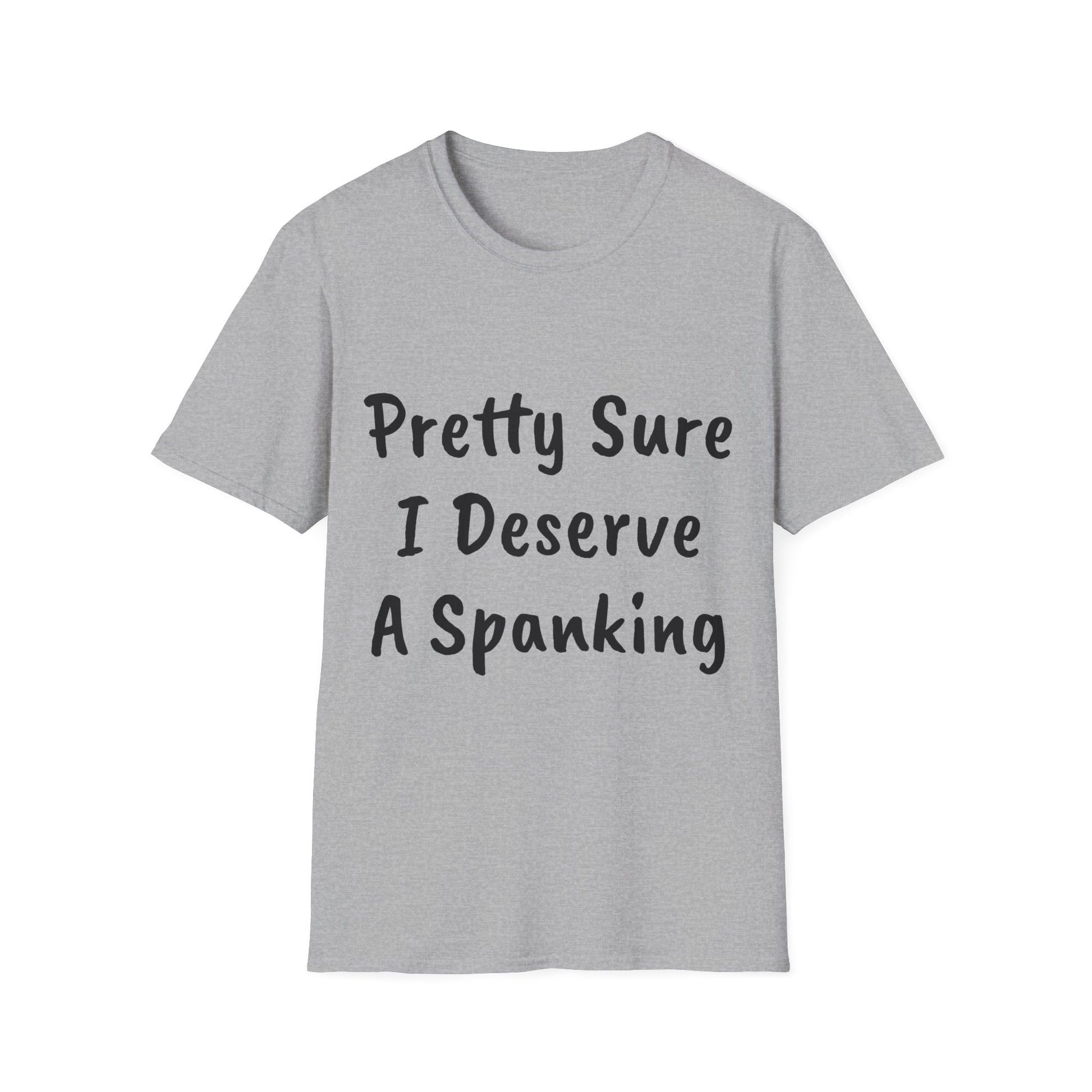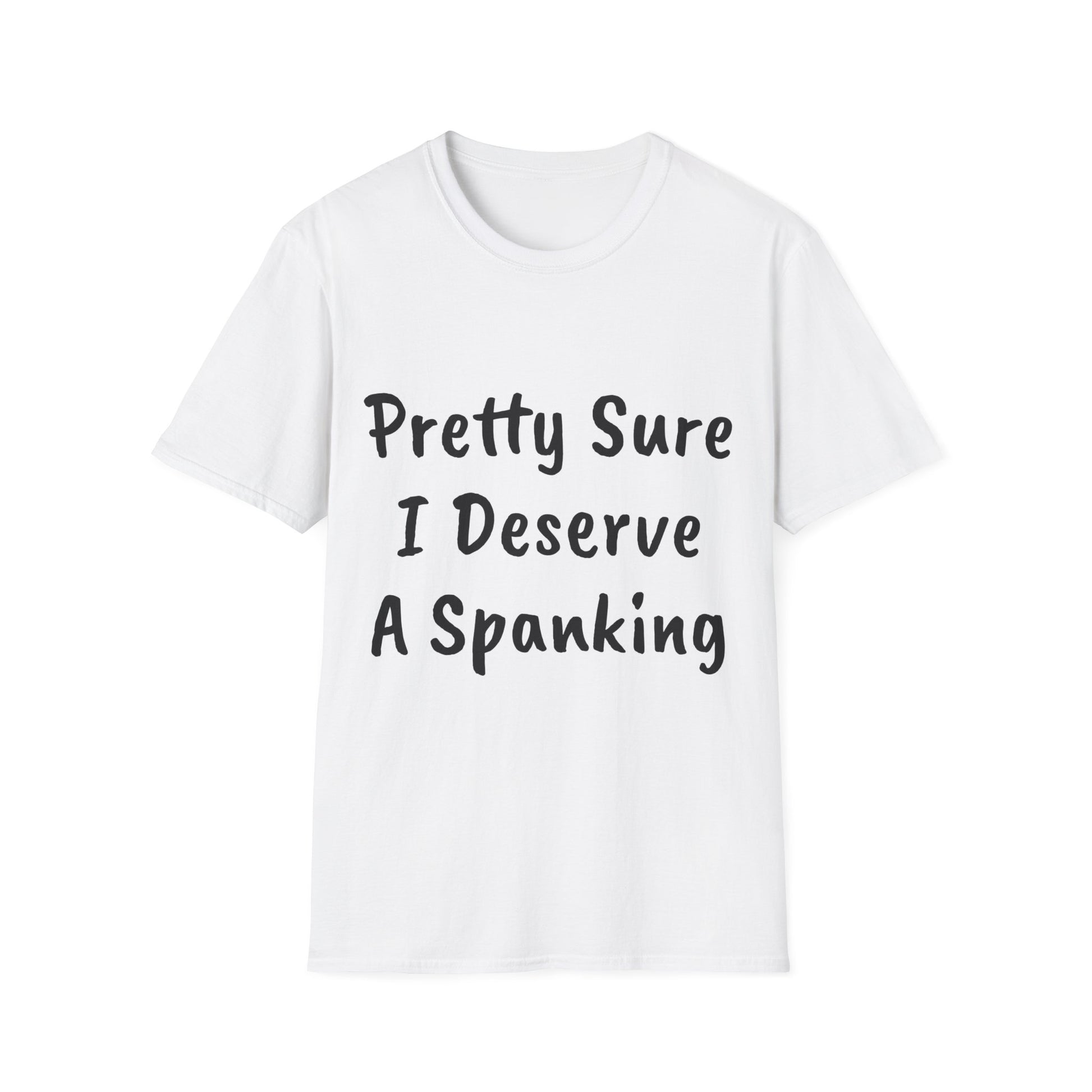 "Pretty Sure I Deserve a Spanking" Unisex Softstyle T-Shirt: Make a bold statement with this cheeky tee! Whether you're feeling playful or just want to add a touch of humor to your wardrobe, this soft and comfortable t-shirt is sure to get a reaction. Perfect for casual wear or as a conversation starter, this shirt is sure to be a fun addition to your collection.