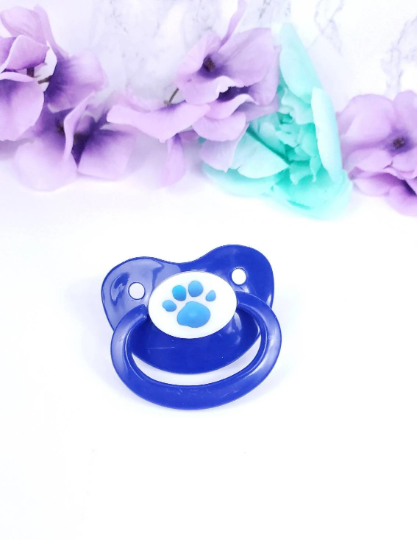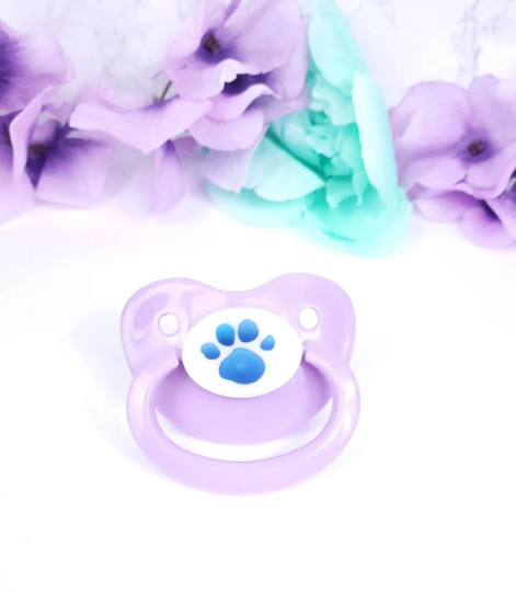 Never grow up and be in your comfortable little space with this Paw Print Adult Pacifier! Cosplay, snoring, and much more can be accomplished with this kawaii pacifier.