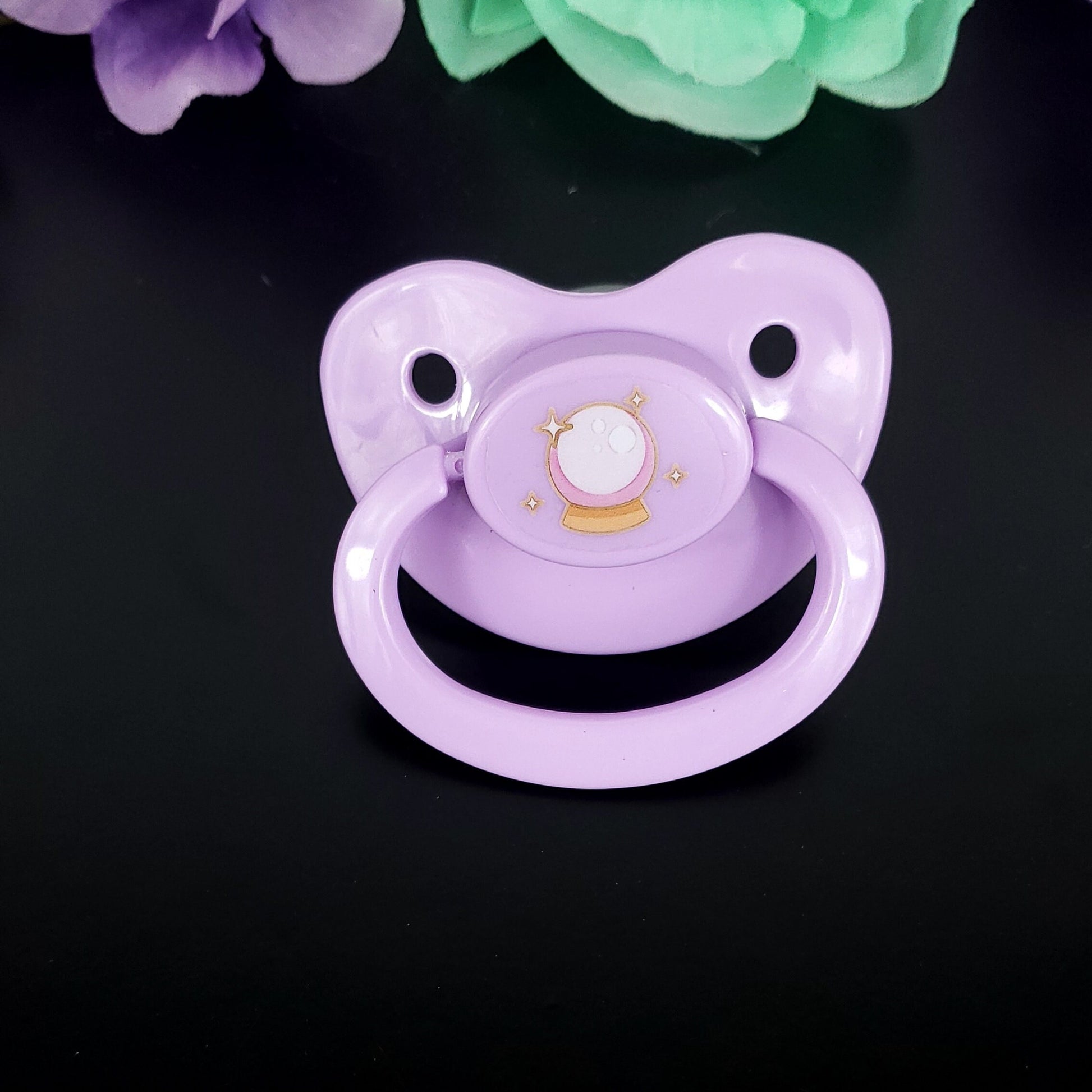 Introducing the Crystal Ball Adult Pacifier, the perfect accessory for those who love unique and mystical items. This pacifier features a crystal ball image that adds an enchanting and magical touch to your ABDL accessories.