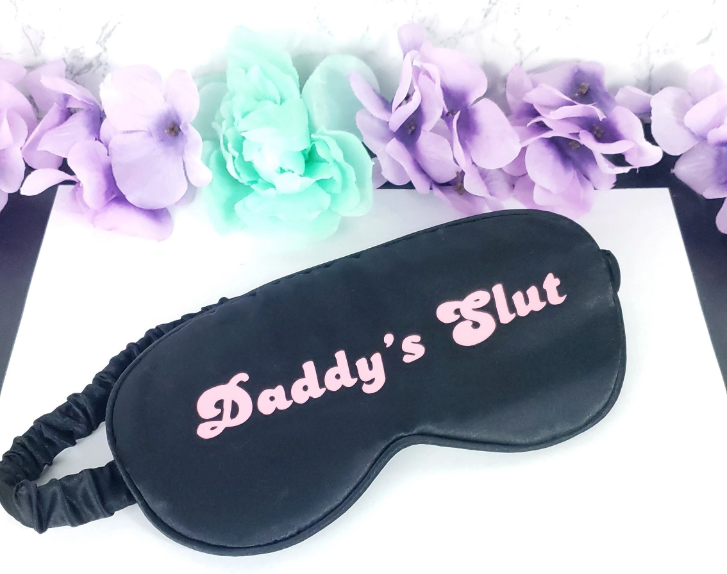 Experience a daring new adventure with the Daddy's Slut Blindfold. Silky and comfortable, this blindfold will heighten your senses and add an element of surprise to intimate moments. Combine with role-playing for an extra thrill. Ready to take the plunge?