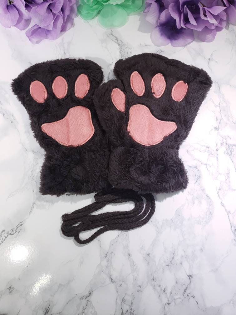 Cute, Fluffy, Multi-Purpose Paws!! These Fingerless paws are perfect to help bring that animal side out! Wear them out to keep you warm or wear them in to play.