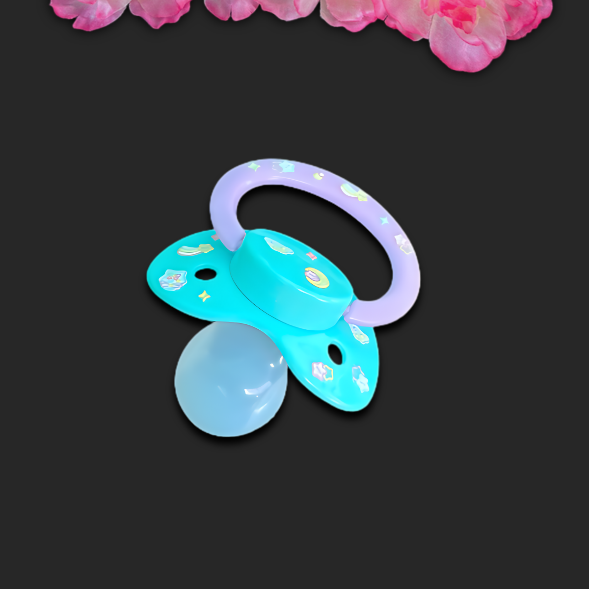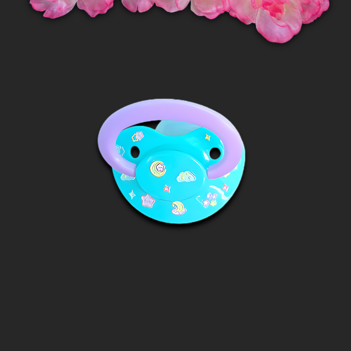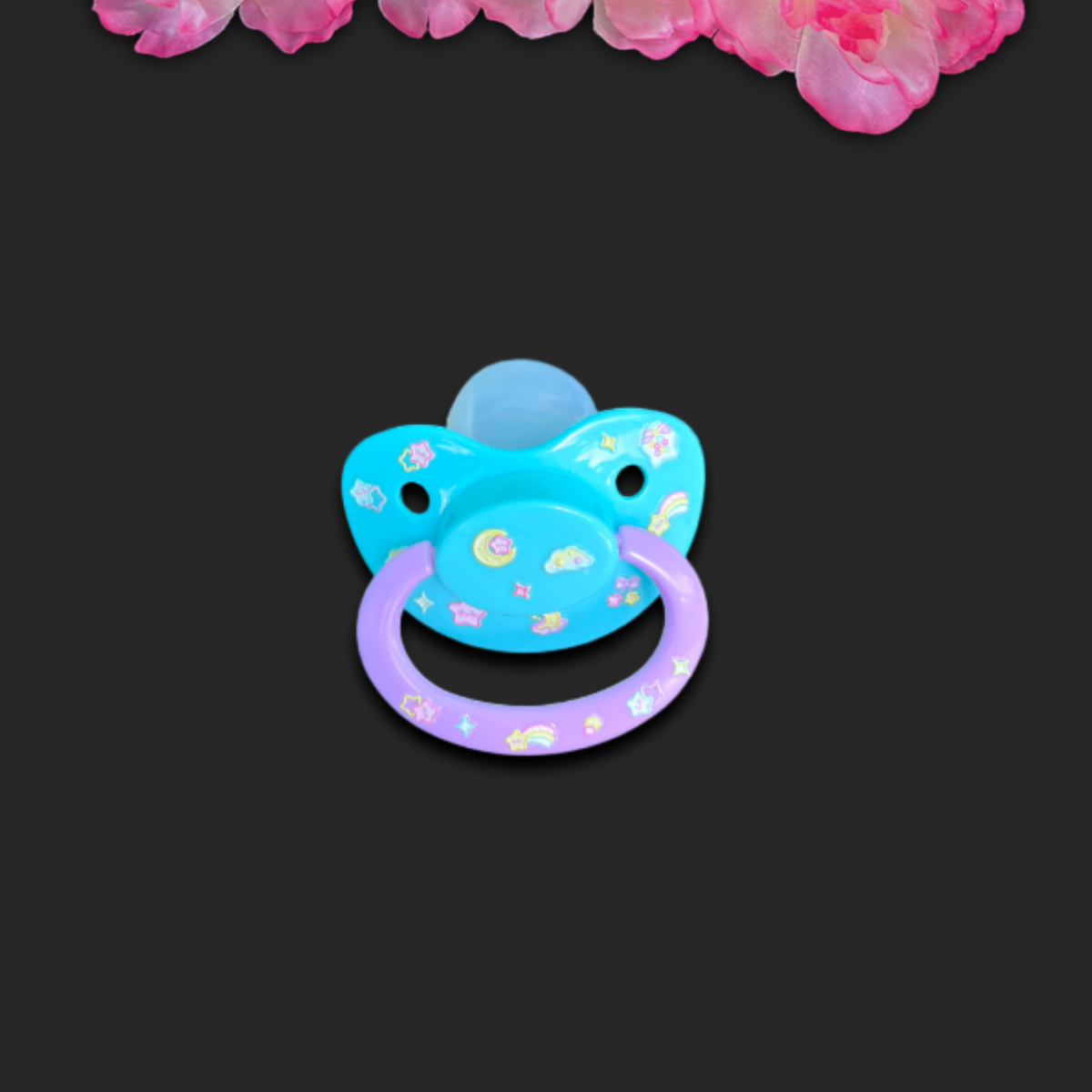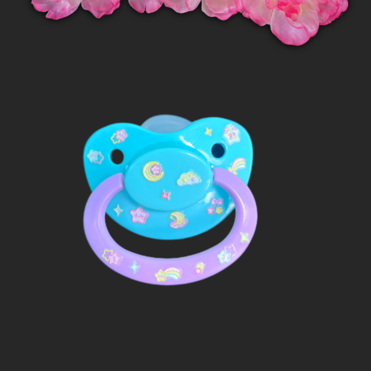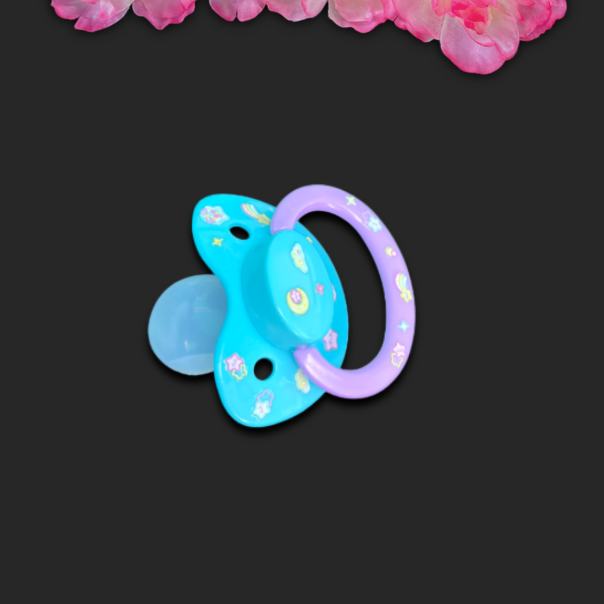 Indulge in a touch of whimsy with the Deco Adult Pacifier, adorned with pastel stars and moons. Embrace your inner child (or just soothe tired nerves) with this kawaii, playful accessory. Because adults deserve a little fun too! (Seriously, who doesn't love a good pacifier?)
