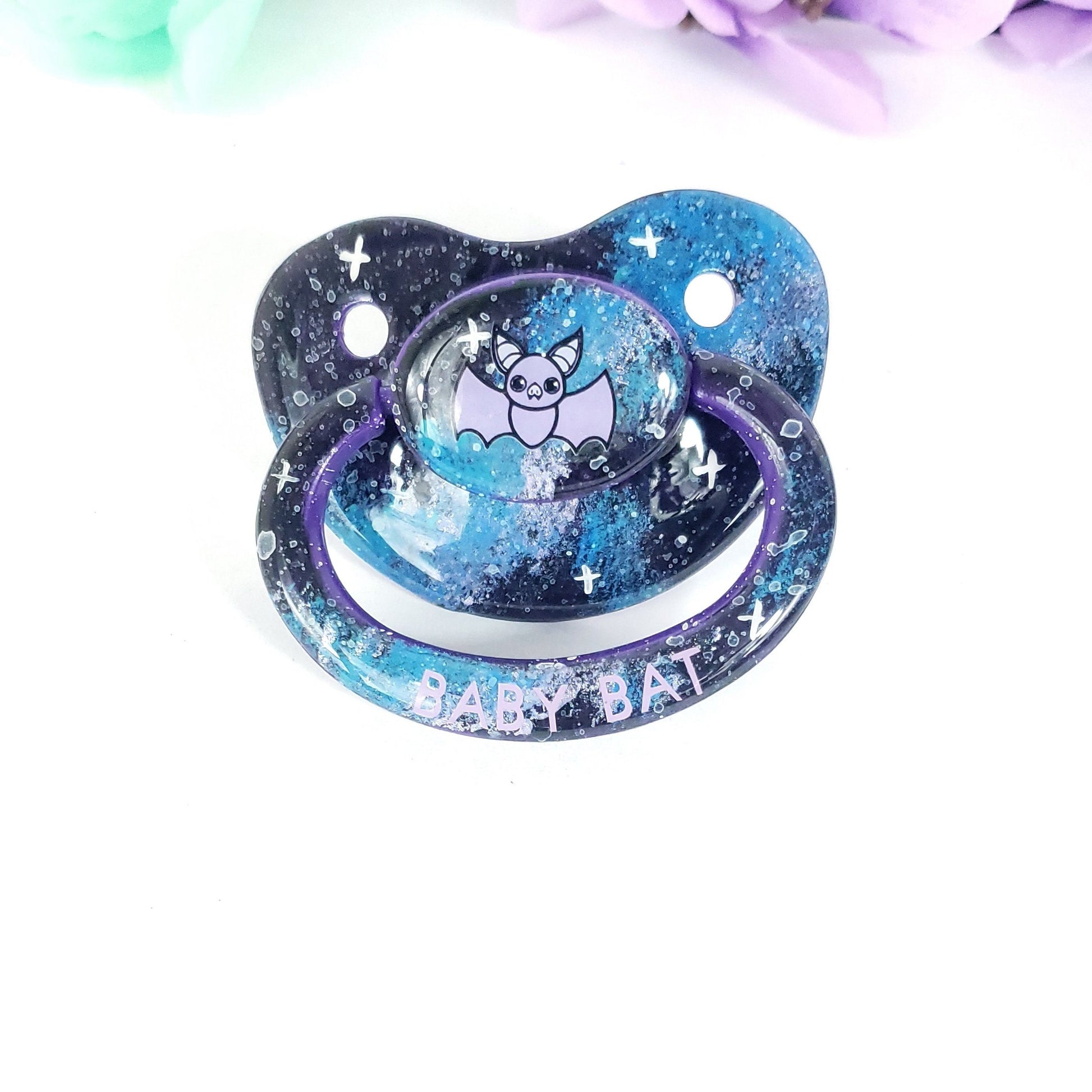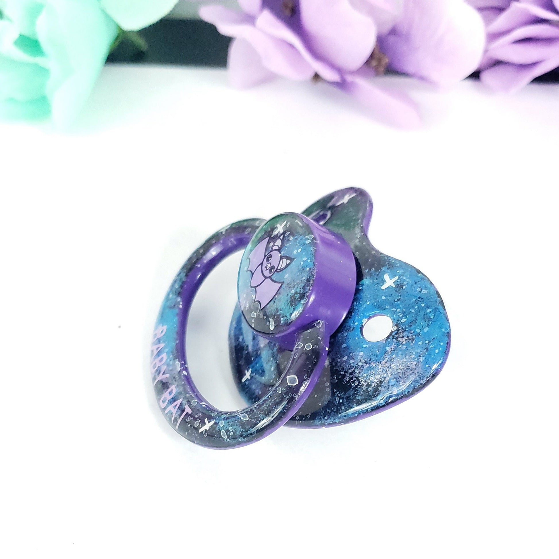 Get ready to soar through the stars with our fully painted galaxy bat ABDL adult pacifier!
