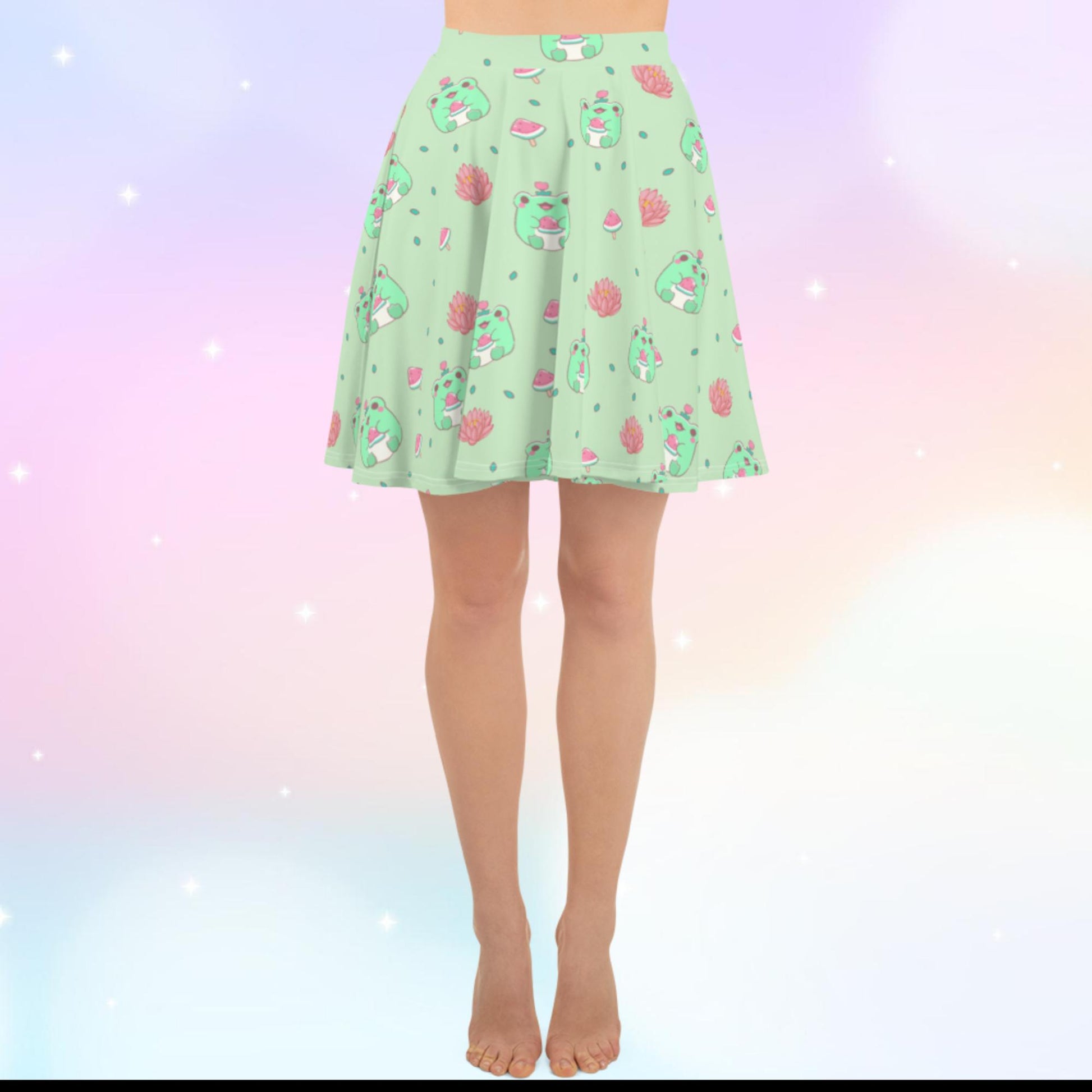 Embrace the charm of summer with our Kawaii Frogs Summer Skater Skirt. It's more than just a skirt; it's a statement piece that brings joy and cuteness wherever you go. Order yours today and let your style leap to new heights!