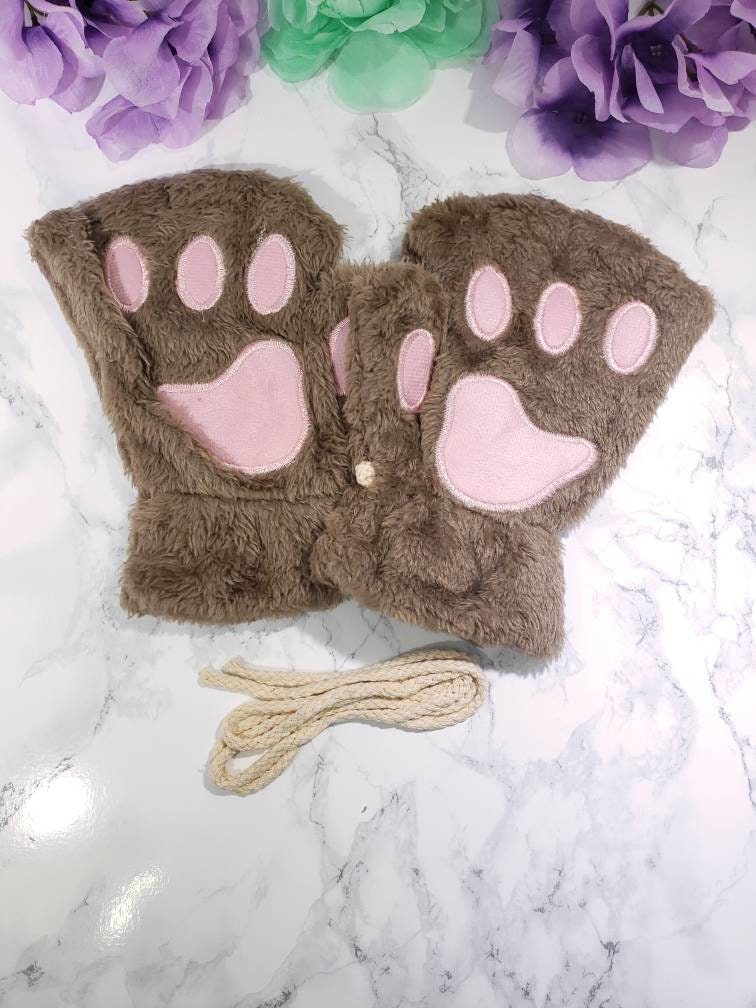 Cute, Fluffy, Multi-Purpose Paws!! These Fingerless paws are perfect to help bring that animal side out! Wear them out to keep you warm or wear them in to play.