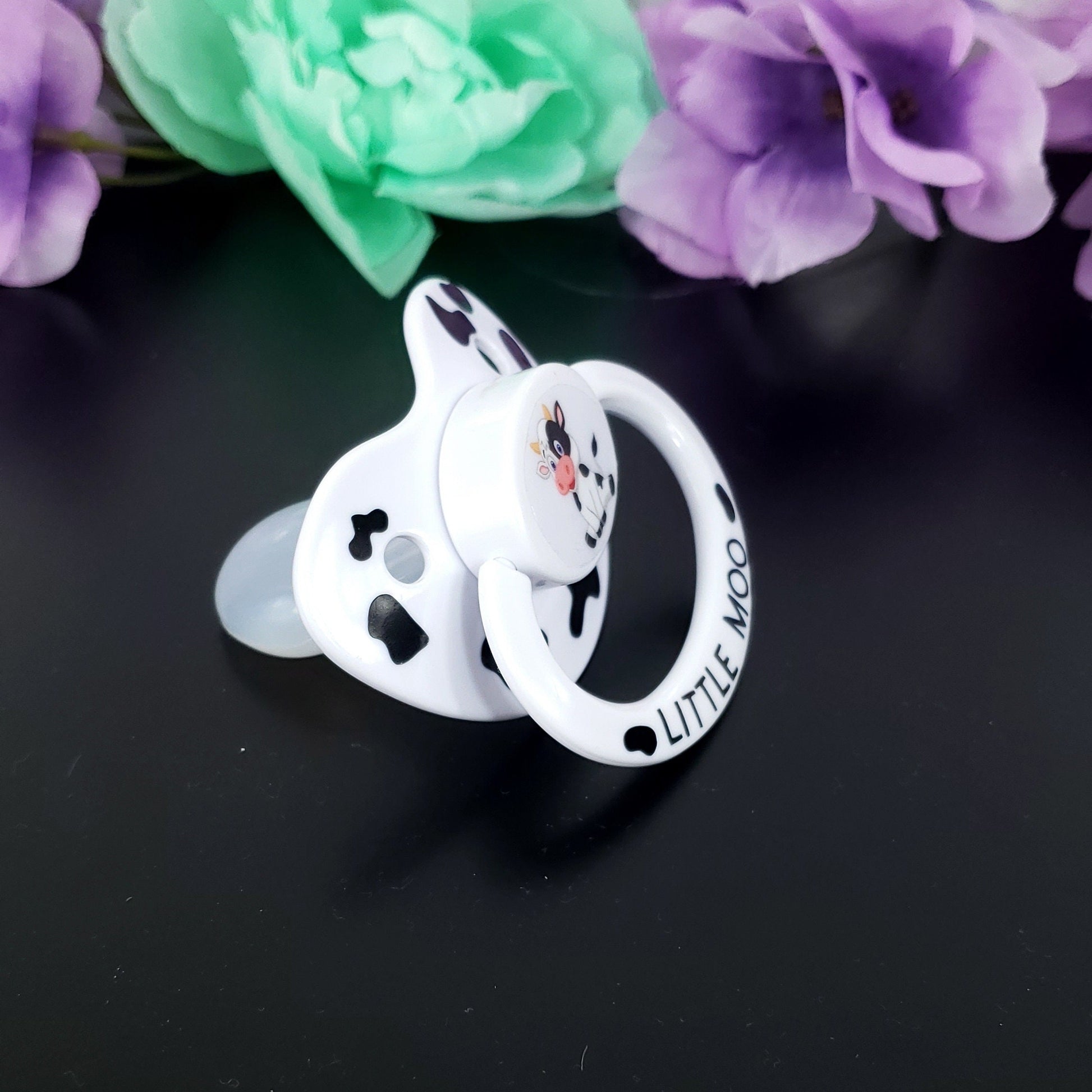Never grow up and be in your comfortable little space with this Little Moo Baby Cow Adult Pacifier! Cosplay, snoring, and much more can be accomplished with this kawaii pacifier.
