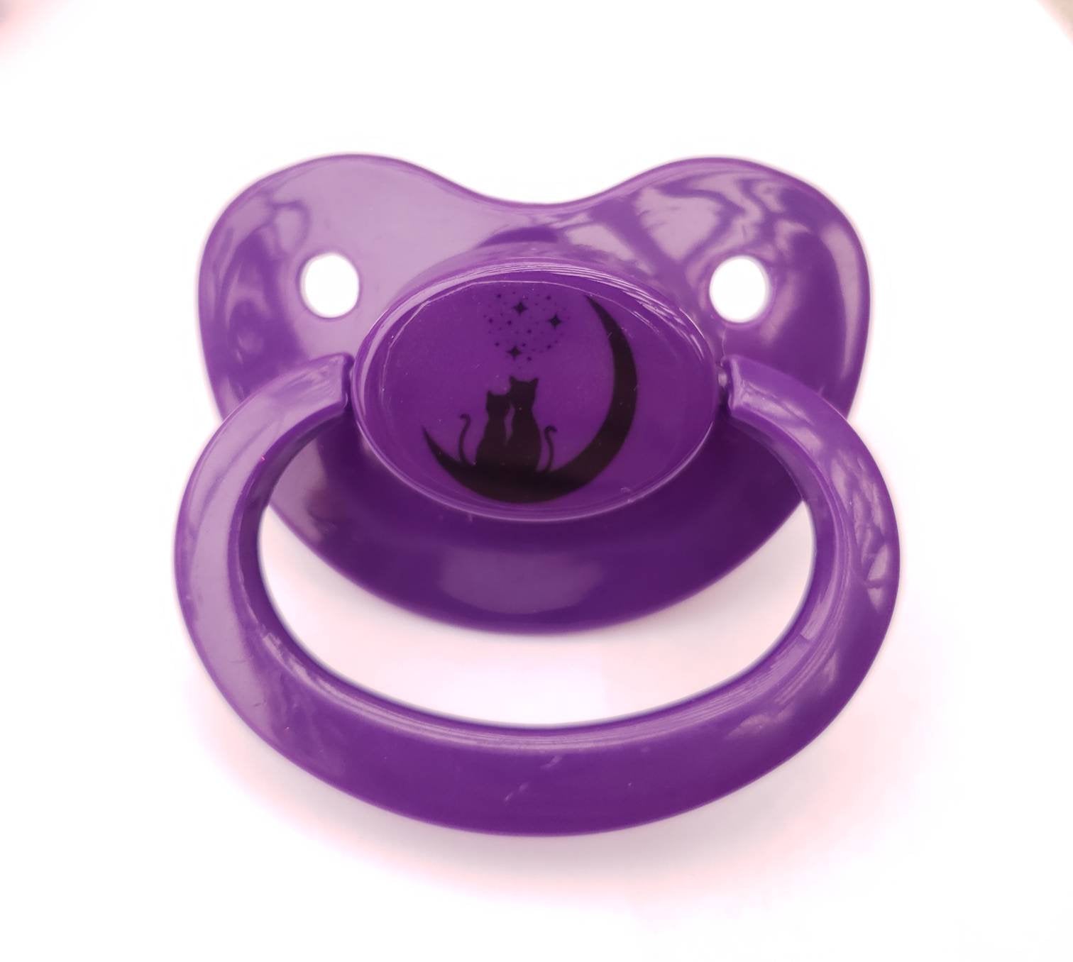 Never grow up and be in your comfortable little space with this Moons and Kittens Adult Pacifier! Cosplay, snoring, and much more can be accomplished with this kawaii pacifier.