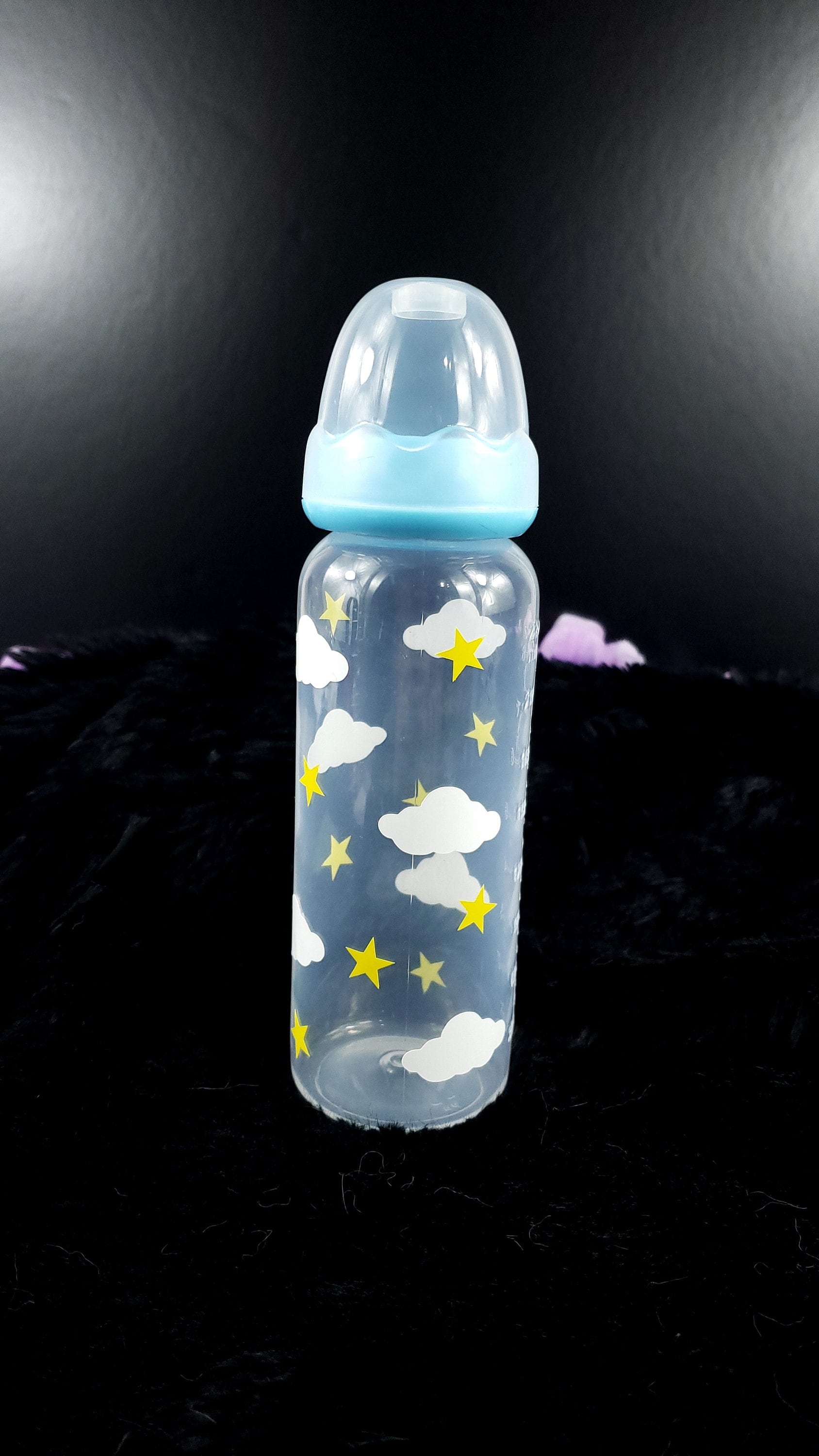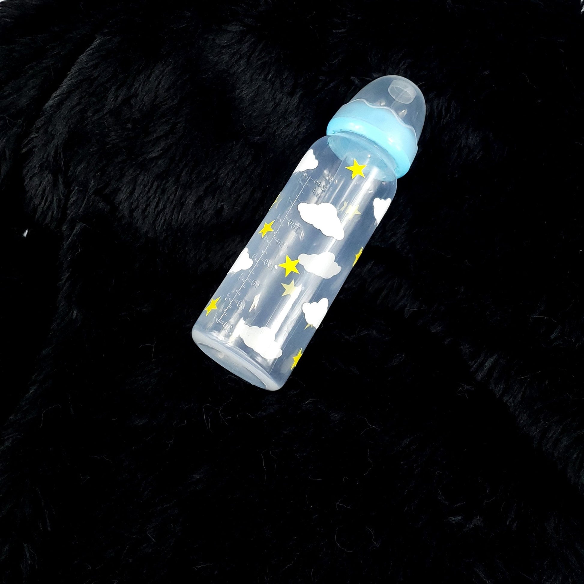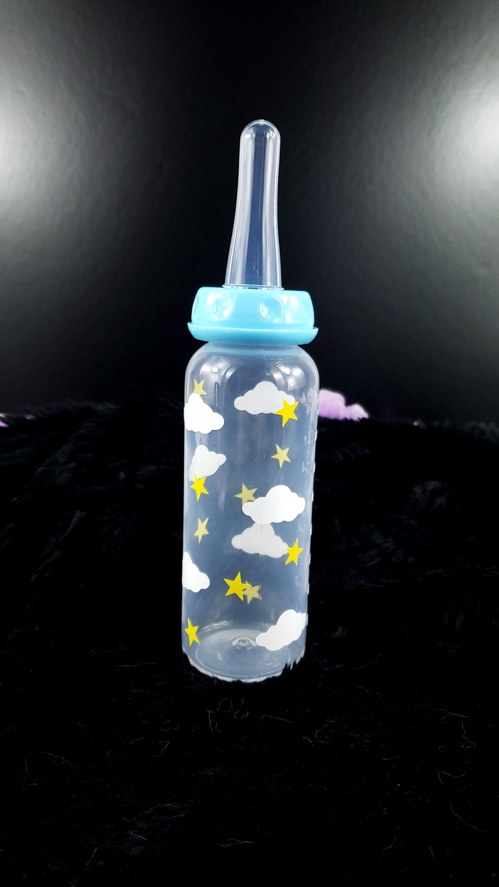 Introducing the Night Time Cloud and Stars ABDL 8 oz Adult Baby Bottle, the perfect accessory for your night-time ABDL playtime! This charming bottle features a delightful cloud and stars design that is sure to add a touch of magic and wonder to your feeding sessions. The 8 oz capacity ensures long-lasting feeding sessions, while the silicone nipple provides a comfortable and realistic feeding experience. Made with high-quality, non-toxic materials, the Night Time Cloud and Stars ABDL 8 oz Adult Baby Bottle is both safe and durable for everyday use or for ABDL play with a fun twist. The bottle is easy to clean and can be used with hot or cold liquids, making it a versatile accessory for any occasion. Whether you're a dedicated ABDL enthusiast or simply looking for a fun and functional bottle to complete your collection, the Night Time Cloud and Stars ABDL 8 oz Adult Baby Bottle is sure to transport you to a world of wonder and imagination!