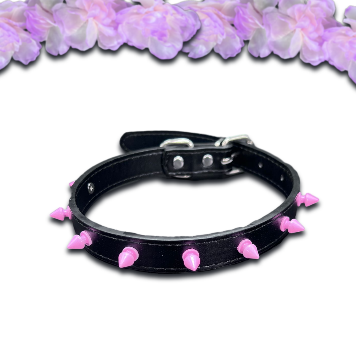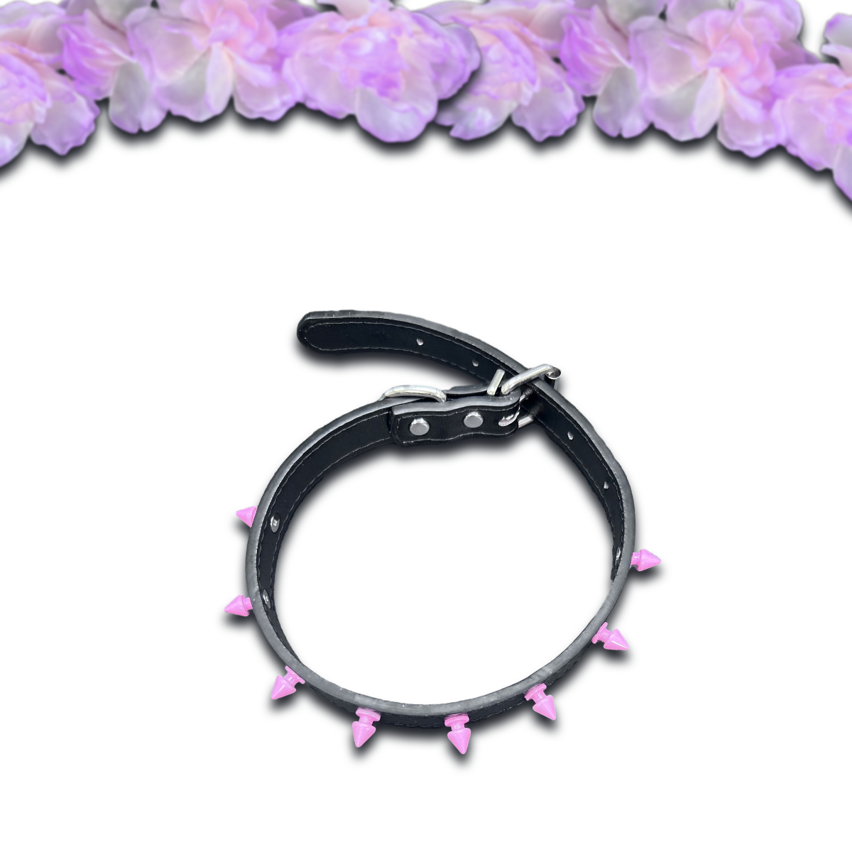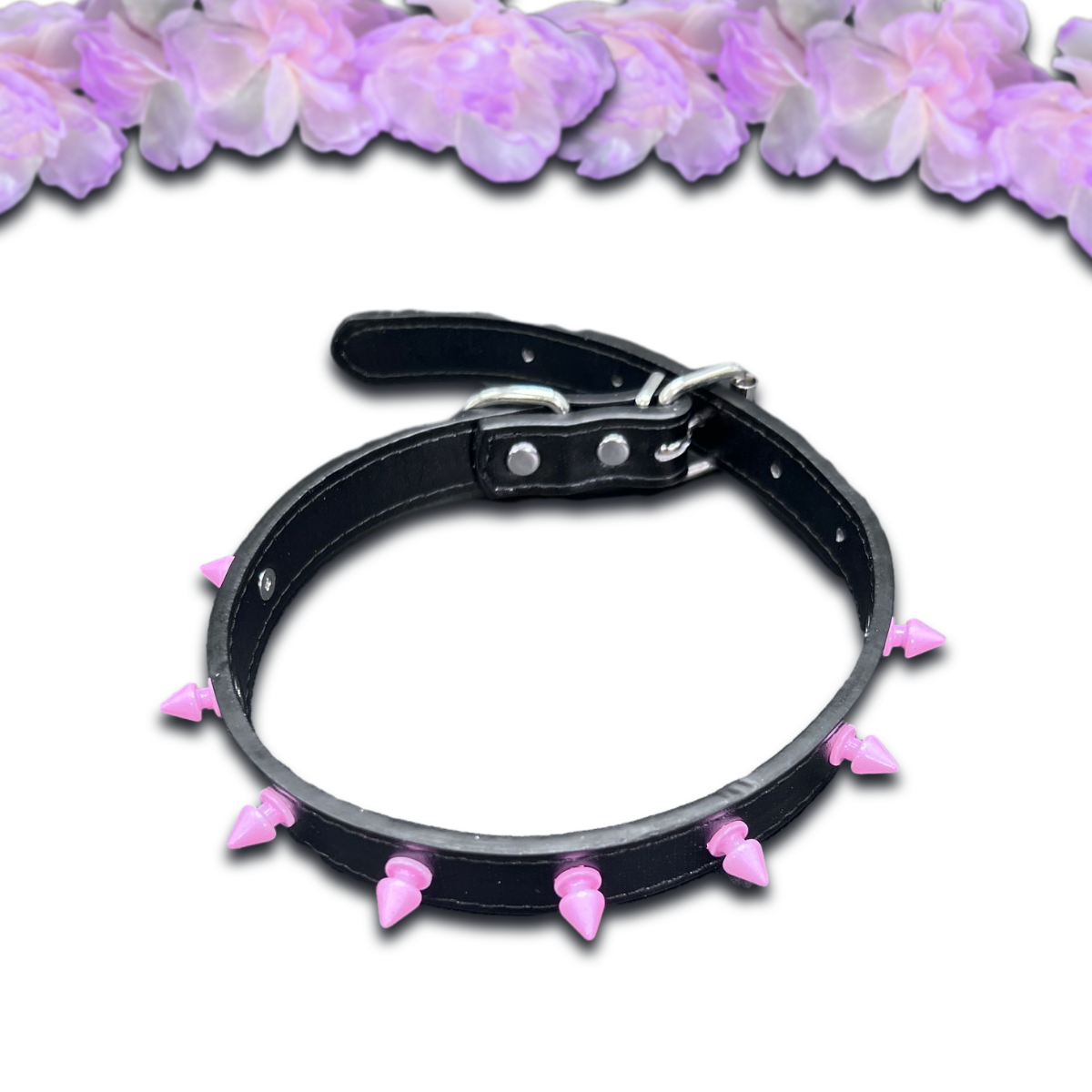 Embrace the edgy charm of pastel goth with this striking faux leather choker! Made from smooth black faux leather and accented with soft pink spikes, this choker is the perfect blend of cute and rebellious. Its durable yet comfortable design makes it ideal for daily wear or as a standout piece for special occasions. Whether you're adding a bold touch to your pastel goth look or simply want to showcase your unique style, this choker necklace is sure to turn heads. Let your personality shine with this beautifully contrasting accessory!