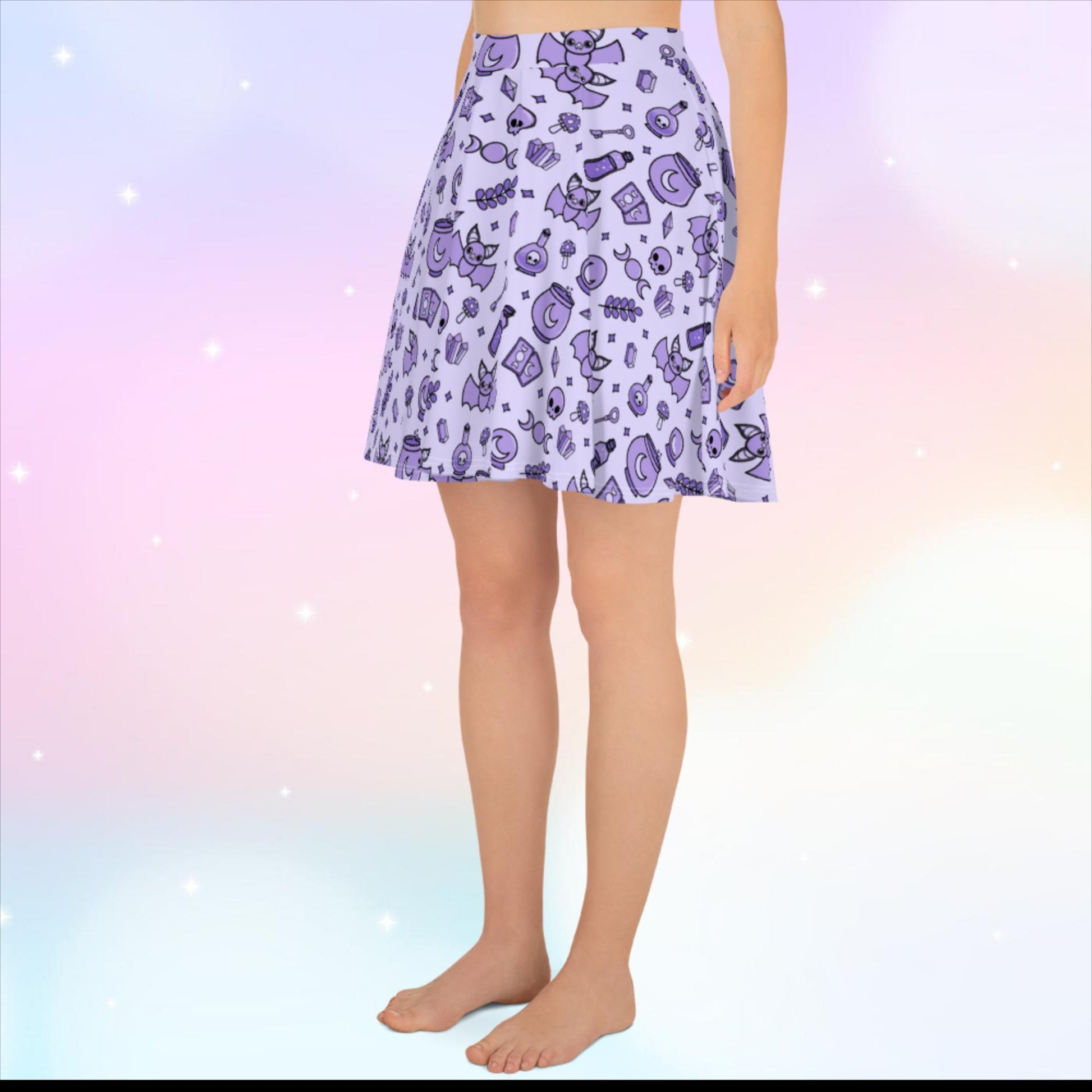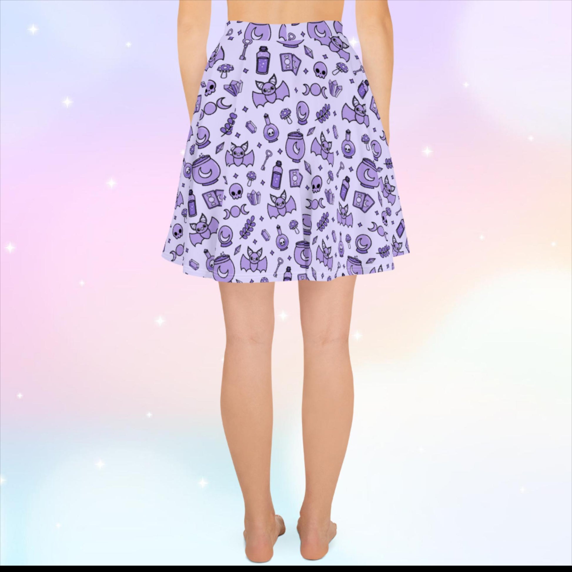 Spellbound Witchy Skater Skirt: Embrace your enchanting side with this spellbinding skater skirt. Featuring a witchy design that is sure to captivate, this skirt is perfect for adding a touch of magic to your wardrobe. The flared cut and comfortable fabric make it ideal for everyday wear or special occasions. Whether you're casting spells or simply enjoying the day, this skirt is sure to make you feel bewitchingly beautiful.