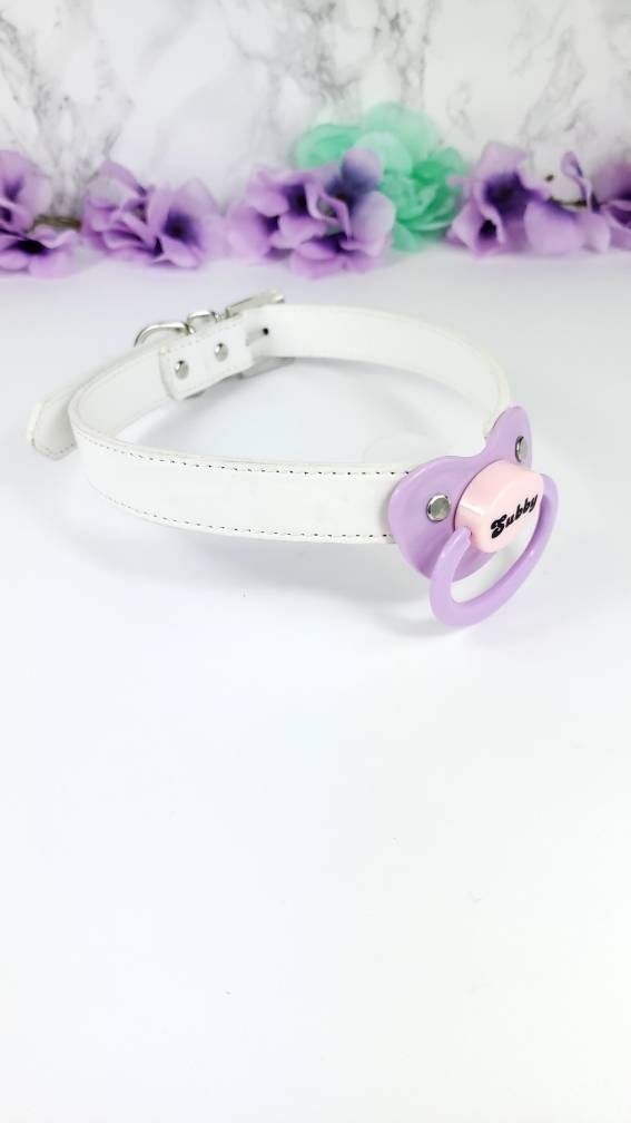 Handmade fully adjustable adult baby pacifier gag! This listing is for a unique and cute kawaii pacifier gag that says Subby!